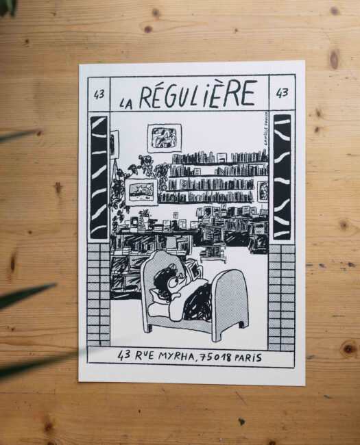 < Retour à la boutique Filtrer TousCartes postalesÉditionsObjetsPosters Carnet La Régulière x Camille Foucou 15,00 € Poster « La Régulière » par Camille Foucou 20,00 € Livret d’exposition de Pauline Barzilaï 7,00 € – 18,90 €Plage de prix : 7,00 € à 18,90 € Carnet à dessin « Reading books is sexy » 14,00 € Calendrier 2025 « Colorama x La Régulière » par Melek Zertal 20,00 € Le prix initial était : 20,00 €.10,00 €Le prix actuel est : 10,00 €. Édition – From me to you 15,00 € Duo cartes La Régulière en letterpress 8,00 € « La Goutte d’Or, mode d’emploi » 15,00 € Carnet à dessin Melek Zertal x La Régulière 12,00 € Carnet à dessin Raphaëlle Macaron x La Régulière 12,00 €