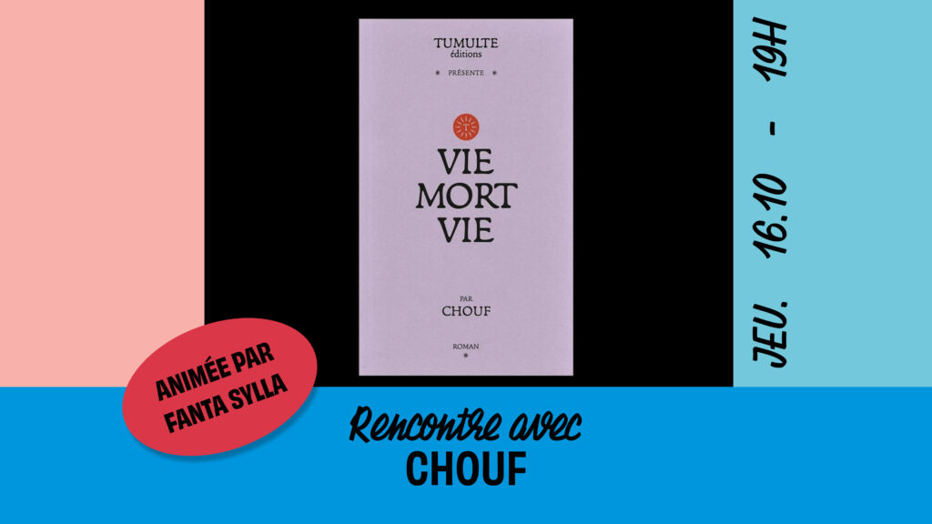 Jeudi 16 octobre, nous recevons Chouf pour son roman « Vie, mort, vie » publié par les éditions Tumulte, .